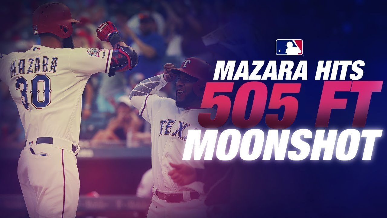 Texas Rangers' outfielder Nomar Mazara hit a ball 505 feet at Globe Life Field on June 21, 2019.