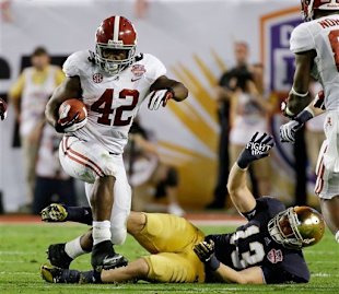 Alabama's Eddie Lacy ran through and over the Notre Dame defense. (AP)