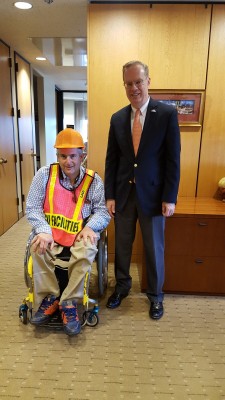 Alumnus Danny Heumann visits the construction site for the University Promenade. Heumann is a consultant to the University on accessibility measures. Photo by Bryan Smith